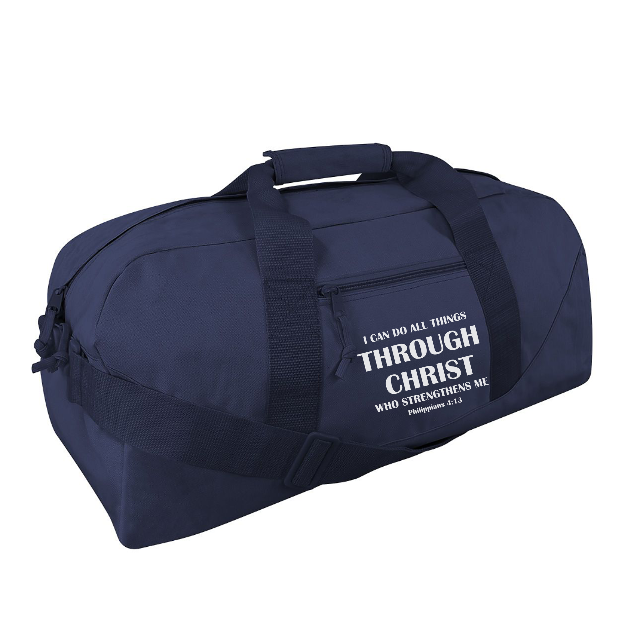 Carry your faith wherever you go with this inspiring Christian duffel bag featuring the powerful verse from Philippians 4:13: "I Can Do All Things Through Christ Who Strengthens Me." Perfect for the gym, weekend trips, church retreats, or daily use.