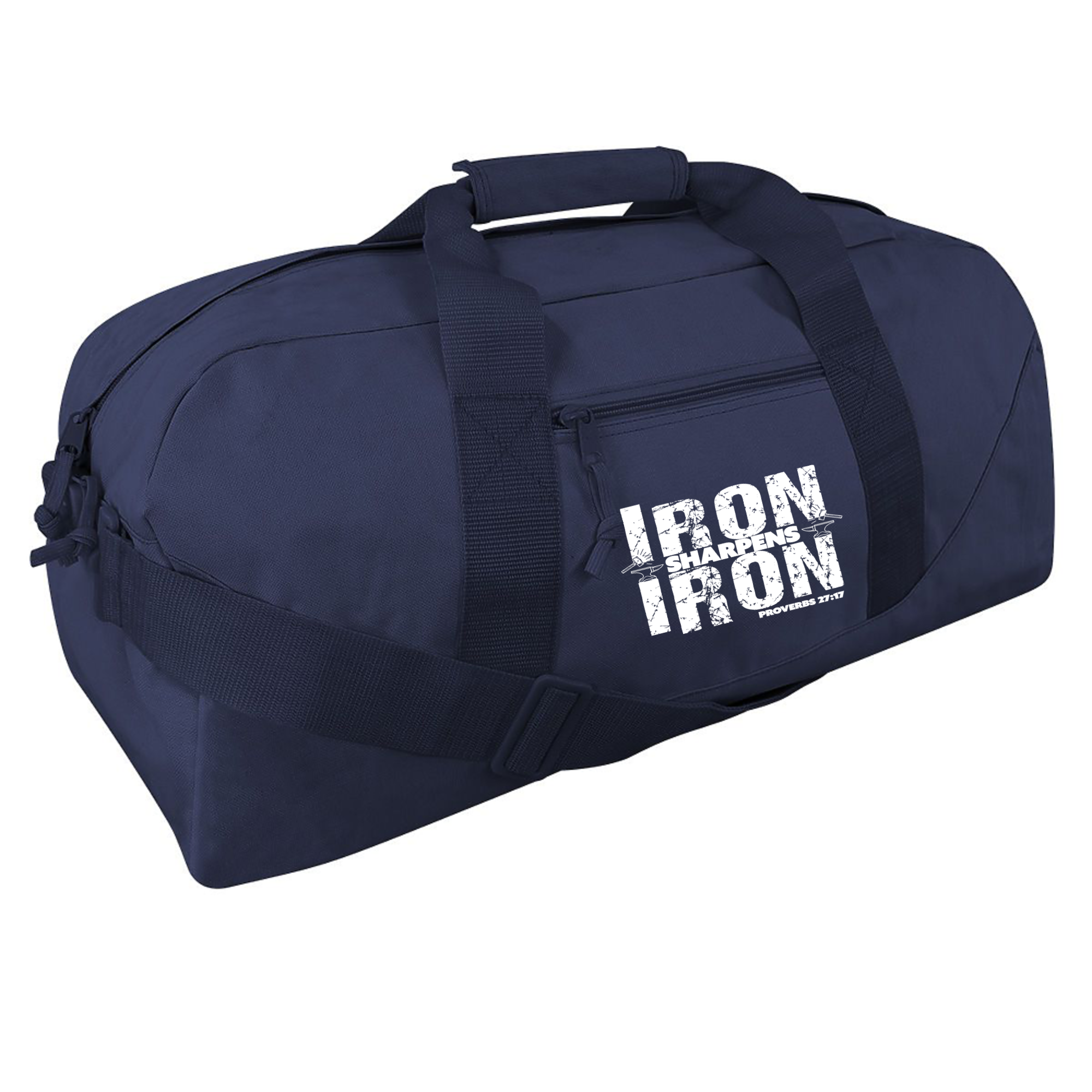 Strengthen your faith and your body with this powerful "Iron Sharpens Iron" Christian duffel bag featuring Proverbs 27:17. Designed for men who live their faith boldly, this inspirational gym bag combines rugged style with spiritual purpose.
